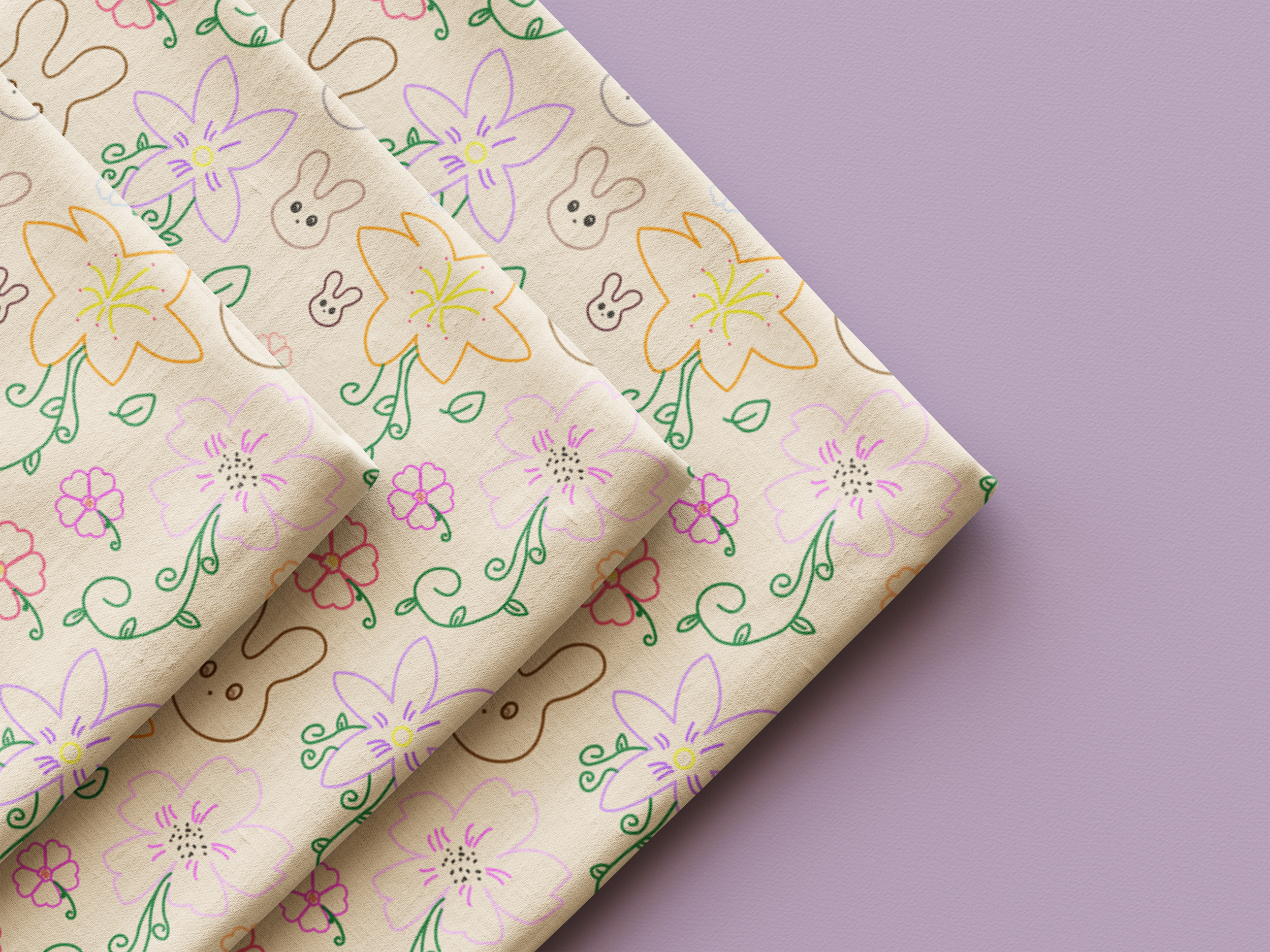 The project was all about creating a fun illustrative pattern that resonates with the innocence of childhood. I wanted to evoke a sense of wonder and play, making it perfect for children’s apparel. The combination of the lively bunny and the delightful flowers creates a joyful scene that not only appeals to kids but also invites parents to explore the beauty of nature through their children's clothing.